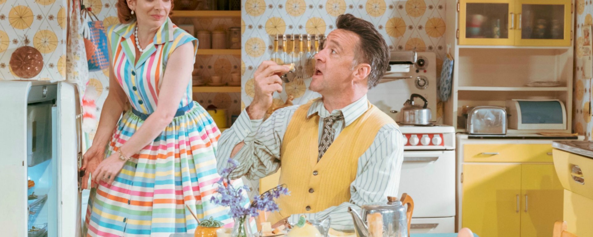 Laura Wade’s new comedy follows one woman’s quest to become the perfect 1950s housewife, as the secrets and inner workings begin to unravel behind the gingham curtains. HOME, I’M DARLING features direction from Theatr Clwyd artistic director Tamara Harvey with design by Anna Fleischle.